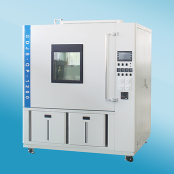 左側為試驗箱箱體,右側為風道及控制柜,風道內裝有加濕管, 蒸發器,加熱管,風輪等裝置,通過從右側上出風,下回風形成一個風路 |