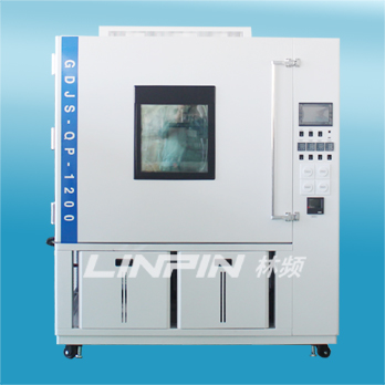 左側為試驗箱箱體,右側為風道及控制柜,風道內裝有加濕管, 蒸發器,加熱管,風輪等裝置,通過從右側上出風,下回風形成一個風路 |